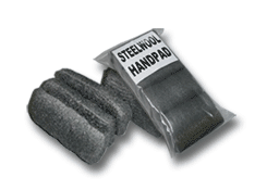 Hand-Size Steelwool pads packaged in a polyethlyene bag with replaceable zip lock closure. Packaged 16 pads per bag customised packaging is available on request.